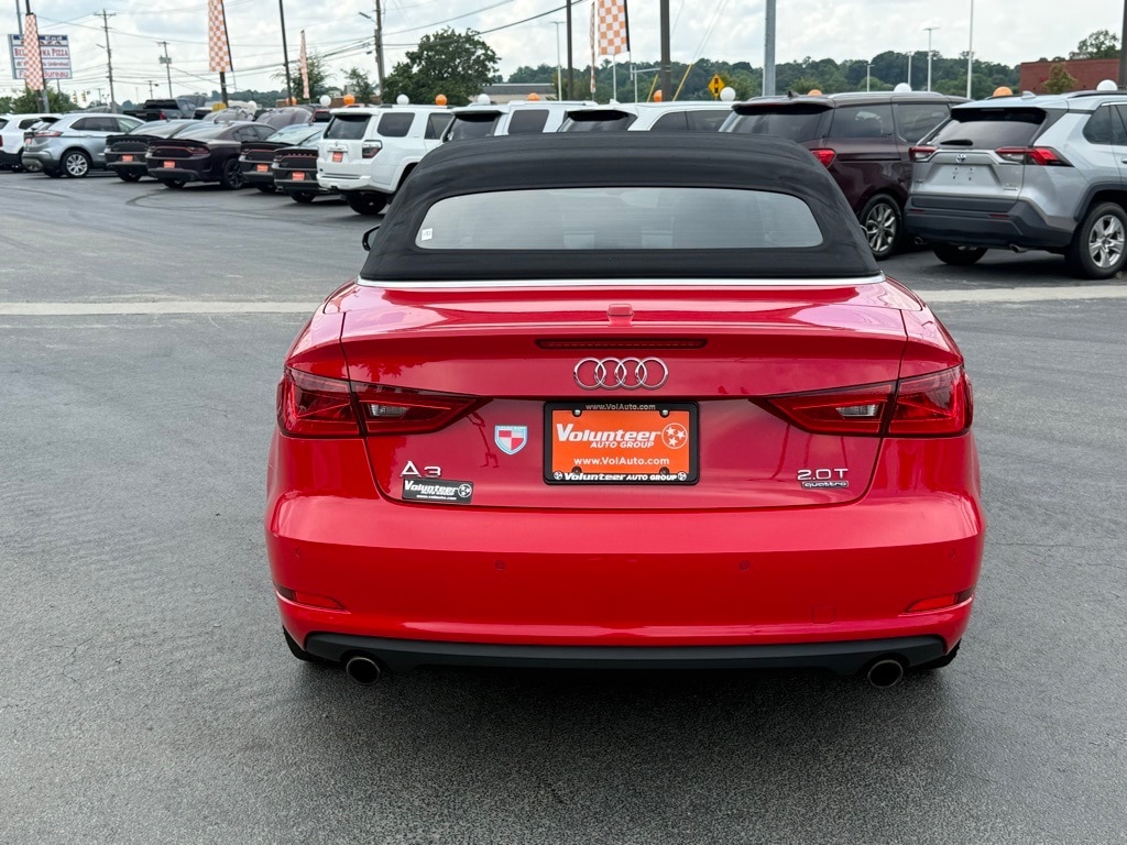 Must see!, **FULLY SERVICED AND DETAILED**, Bluetooth, Backup Camera, Heated Leather Seats, A3 2.0T Premium Plus quattro, 2D Convertible, 2.0L 4-Cylinder TFSI, 6-Speed S tronic® Automatic, quattro, Brilliant Red, Black Leather, 3-Step Heated Front Seats, 4-Wheel Disc Brakes, 9 Speakers, ABS brakes, Air Conditioning, Alloy wheels, Aluminum Interior Package, Aluminum Mistral Silver Inlays, AM/FM radio: SiriusXM, Anti-whiplash front head restraints, Audi Advanced Key, Audi Guard Wheel Lock Kit, Audi Music Interface w/iPod Integration, Audi Parking System Plus w/Rearview Camera, Audi Side Assist, Auto-Dimming Interior Mirror w/Digital Compass, Automatic temperature control, Brake assist, Bumpers: body-color, CD player, Cold Weather Package, Convenience Package, Convertible roof lining, Delay-off headlights, Driver Assistance Package, Driver door bin, Driver vanity mirror, Dual front impact airbags, Dual front side impact airbags, Electronic Stability Control, Four wheel independent suspension, Front anti-roll bar, Front Bucket Seats, Front Center Armrest, Front dual zone A/C, Front reading lights, Glass rear window, Heated Side Mirrors, Heated Windshield Washer Nozzles, High intensity discharge headlights: Xenon plus, Illuminated entry, Integrated roll-over protection, Interior Storage Package, Leather Seating Surfaces, Leather Shift Knob, Leather steering wheel, LED Interior Lighting Package, Low tire pressure warning, Occupant sensing airbag, Outside temperature display, Panic alarm, Passenger door bin, Passenger vanity mirror, Power convertible roof, Power door mirrors, Power steering, Power w