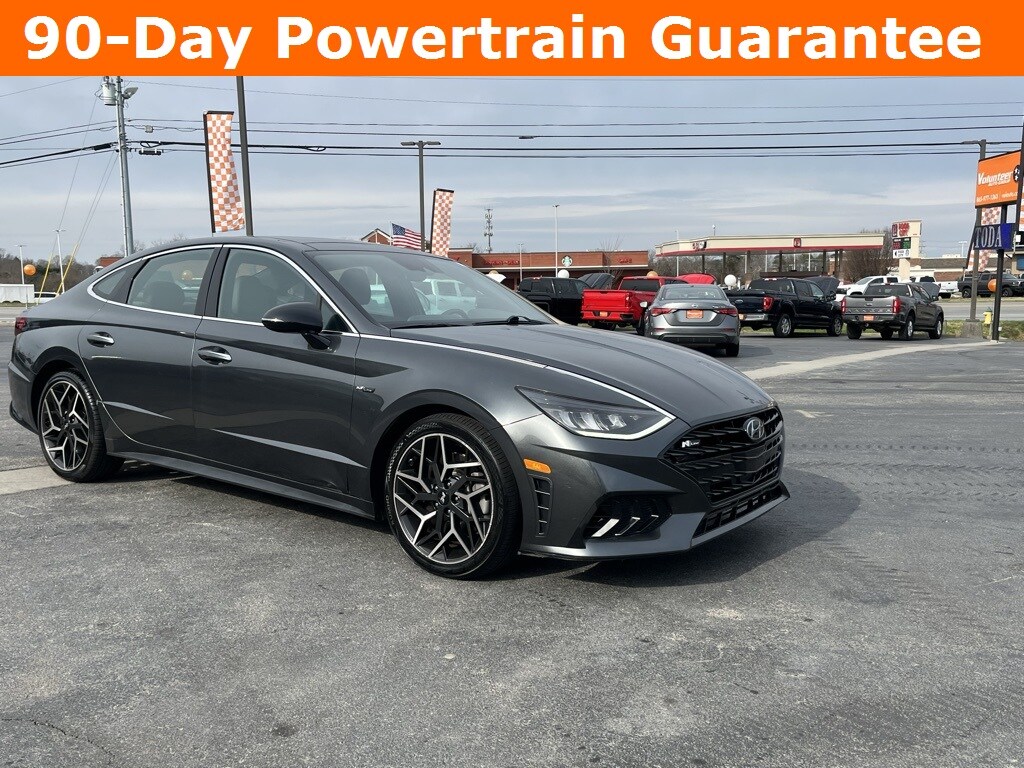 Must see!, **FULLY SERVICED AND DETAILED**, ECO Mode, Sport Mode, Bluetooth, Backup Camera, Navigation, Moonroof/Sunroof, Sonata N Line, 4D Sedan, I4, 8-Speed, FWD, Portofino Gray, Black Leather, 12 Speakers, 4-Wheel Disc Brakes, ABS brakes, Air Conditioning, Alloy wheels, AM/FM radio: SiriusXM, Apple CarPlay & Android Auto, Auto High-beam Headlights, Auto-dimming Rear-View mirror, Automatic temperature control, Brake assist, Bumpers: body-color, Cargo Hook, Cargo Net, Cargo Package (DISC), Carpeted Floor Mats, Delay-off headlights, Driver door bin, Driver vanity mirror, Dual front impact airbags, Dual front side impact airbags, Electronic Stability Control, Emergency communication system: Blue Link Connected Car Service (3-year complimentary subscription), Exterior Parking Camera Rear, First Aid Kit, Four wheel independent suspension, Front anti-roll bar, Front Bucket Seats, Front Center Armrest, Front dual zone A/C, Front reading lights, Fully automatic headlights, Garage door transmitter: HomeLink, Heated door mirrors, Heated front seats, Heated N Unique Sport Seats, Illuminated entry, Knee airbag, Leather steering wheel, Low tire pressure warning, Nappa Leather Seating Surfaces, Navigation System, Occupant sensing airbag, Option Group 01, Outside temperature display, Overhead airbag, Overhead console, Panic alarm, Passenger door bin, Passenger vanity mirror, Power door mirrors, Power driver seat, Power moonroof, Power steering, Power windows, Radio data system, Radio: AM/FM/MP3/HD/SiriusXM Display Audio w/Nav, Rear anti-roll bar, Rear seat center armrest, Rear side impact airbag, Rear window defroster, Remote keyless entry, Reversible Cargo Tray, Security system, Speed control, Speed-sensing steering, Speed-Sensitive Wipers, Split folding rear seat, Spoiler, Steering wheel mounted audio controls, Tachometer, Telescoping steering wheel, Tilt steering wheel, Traction control, Trip computer, Turn signal indicator mirrors, Variably intermi