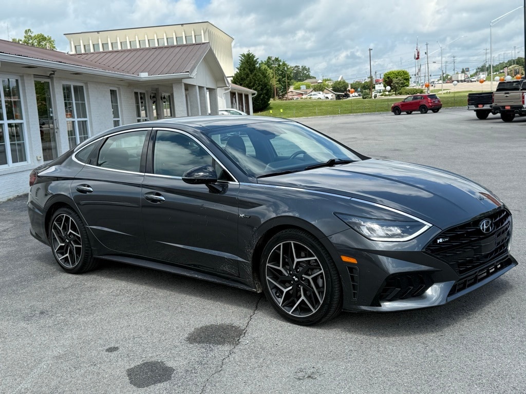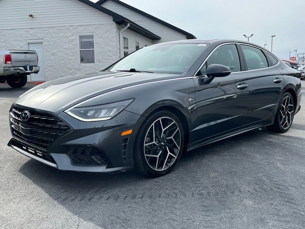 Must see!, **FULLY SERVICED AND DETAILED**, ECO Mode, Sport Mode, Bluetooth, Backup Camera, Navigation, Moonroof/Sunroof, Sonata N Line, 4D Sedan, I4, 8-Speed, FWD, Portofino Gray, Black Leather, 12 Speakers, 4-Wheel Disc Brakes, ABS brakes, Air Conditioning, Alloy wheels, AM/FM radio: SiriusXM, Apple CarPlay & Android Auto, Auto High-beam Headlights, Auto-dimming Rear-View mirror, Automatic temperature control, Brake assist, Bumpers: body-color, Cargo Hook, Cargo Net, Cargo Package (DISC), Carpeted Floor Mats, Delay-off headlights, Driver door bin, Driver vanity mirror, Dual front impact airbags, Dual front side impact airbags, Electronic Stability Control, Emergency communication system: Blue Link Connected Car Service (3-year complimentary subscription), Exterior Parking Camera Rear, First Aid Kit, Four wheel independent suspension, Front anti-roll bar, Front Bucket Seats, Front Center Armrest, Front dual zone A/C, Front reading lights, Fully automatic headlights, Garage door transmitter: HomeLink, Heated door mirrors, Heated front seats, Heated N Unique Sport Seats, Illuminated entry, Knee airbag, Leather steering wheel, Low tire pressure warning, Nappa Leather Seating Surfaces, Navigation System, Occupant sensing airbag, Option Group 01, Outside temperature display, Overhead airbag, Overhead console, Panic alarm, Passenger door bin, Passenger vanity mirror, Power door mirrors, Power driver seat, Power moonroof, Power steering, Power windows, Radio data system, Radio: AM/FM/MP3/HD/SiriusXM Display Audio w/Nav, Rear anti-roll bar, Rear seat center armrest, Rear side impact airbag, Rear window defroster, Remote keyless entry, Reversible Cargo Tray, Security system, Speed control, Speed-sensing steering, Speed-Sensitive Wipers, Split folding rear seat, Spoiler, Steering wheel mounted audio controls, Tachometer, Telescoping steering wheel, Tilt steering wheel, Traction control, Trip computer, Turn signal indicator mirrors, Variably intermi