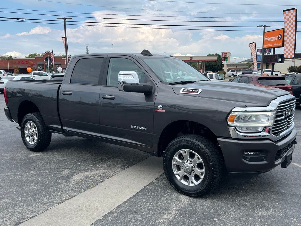 Check out all these great options Laramie Level 1 Equipment Group (12" Touchscreen Display, 2nd Row In Floor Storage Bins, 4G LTE Wi-Fi Hot Spot, Alexa Built-In, Apple CarPlay, Auto Adjust In Reverse Exterior Mirrors, Auto Dim Exterior Mirror, Auto High Beam Headlamp Control, Auto Power-Folding Mirrors, Auto-Dimming Exterior Passenger Mirror, Blind Spot & Cross Path Detection, Center Hub, Chrome Exterior Mirrors, Connected Travel & Traffic Services, Connectivity - US/Canada, Disassociated Touchscreen Display, Exterior Mirrors Courtesy Lamps, Exterior Mirrors w/Heating Element, Exterior Mirrors w/Memory, Exterior Mirrors w/Supplemental Signals, Foam Bottle Insert (Door Trim Panel), For Details, Visit DriveUconnect.com, For More Info, Call 8659771363, Forward & Reverse Utility Lights, Front LED Fog Lamps, Global Telematics Box Module (TBM), Google Android Auto, GPS Antenna Input, GPS Navigation, HD Radio, Integrated Voice Command w/Bluetooth, LED Reflector Headlamps, LED Tail Lamps, Mirror Running Lights, Off-Road Information Pages, ParkSense Front/Rear Park Assist System, Power Adjust Mirrors, Power Adjustable Convex Aux Mirrors, Power Adjustable Pedals w/Memory, Power Heated Fold Telescopic Mirrors w/Memory, Power Telescoping Mirrors, Radio: Uconnect 5 Nav w/12.0" Display, Rain Sensitive Windshield Wipers, Rear Power Sliding Window, Rear Window Defroster, Remote Tailgate Release, Selectable Tire Fill Alert, SiriusXM Radio Service, SiriusXM w/360L, Trailer Tow Pages, and Wheels: 18" x 8.0" Polished Aluminum), Quick Order Package 2HH Laramie, 2500 Laramie, 4D Crew Cab, Cummins 6.7L I6 Turbodiesel, 6-Speed Automatic, 4WD, Granite Crystal Metallic Clearcoat, Black Leather, 10 Speakers, 115V Auxiliary Rear Power Outlet, 2 Way Rear Headrest Seat, 220 Amp Alternator, 3.73 Axle Ratio, 4 Way Front Headrests, 4-Wheel Disc Brakes, ABS brakes, Active Noise Control System, Air Conditioning, Alloy wheels, AM/FM radio: SiriusXM with 360L, Apple CarPlay/Android Auto, Automatic temperature control, Brake assist, Bumpers: body-color, Compass, Delay-off headlights, Driver door bin, Driver vanity mirror, Dual front impact airbags, Dual front side impact airbags, Electronic Stability Control, Electronically Controlled Throttle, Front anti-roll bar, Front Center Armrest w/Storage, Front dual zone A/C, Front License Plate Bracket, Front reading lights, Front Seat Back Map Pockets, Fully automatic headlights, Garage door transmitter, Heated door mirrors, Heated Front Seats, Heated front seats, Heated Steering Wheel, Heated steering wheel, Illuminated entry, Leather steering wheel, Leather Trim 40/20/40 Bench Seat, Low tire pressure warning, Manufacturer's Statement of Origin, Navigation System, Occupant sensing airbag, Outside temperature display, Overhead airbag, Overhead console, Panic alarm, ParkView Rear Back-Up Camera, Passenger door bin, Passenger vanity mirror, Power 2-Way Driver Lumbar Adjust, Power 2-Way Passenger Lumbar Adjust, Power Adjust 8-Way Driver Seat, Power Adjust 8-Way Front Passenger Seat, Power door mirrors, Power driver seat, Power passenger seat, Power steering, Power windows, Radio data system, Rear 60/40 Folding Seat, Rear anti-roll bar, Rear reading lights, Rear seat center armrest, Rear step bumper, Rear window defroster, Remote keyless entry, Security system, Speed control, Split folding rear seat, Steering wheel mounted audio controls, Tachometer, Tilt steering wheel, Tip Start, Tow Hooks, Traction control, Trip computer, Turn signal indicator mirrors, Variably intermittent wipers, and VoltmeteR.