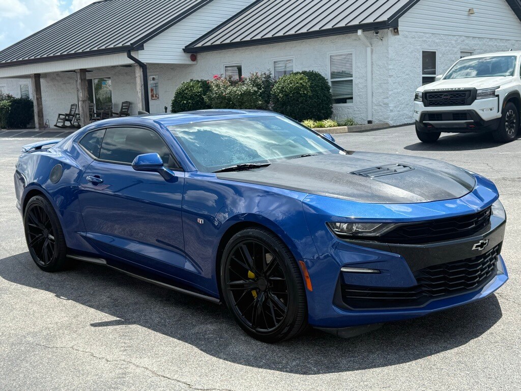 Must see!, **FULLY SERVICED AND DETAILED**, Sport Mode, Bluetooth, Backup Camera, Apple Car Play, Camaro SS 1SS, 2D Coupe, 6.2L V8, 10-Speed Automatic, RWD, Riverside Blue Metallic, Jet Black Cloth, 2.77 Rear Axle Ratio, 4-Wheel Disc Brakes, 6 Speakers, 6-Speaker Audio System Feature, 6-Way Power Front Passenger Seat Adjuster, 8-Way Power Driver Seat Adjuster, ABS brakes, Air Conditioning, Alloy wheels, AM/FM radio: SiriusXM, Apple CarPlay/Android Auto, Automatic temperature control, Bluetooth® For Phone, Brake assist, Bumpers: body-color, Cloth Seat Trim, Compass, Delay-off headlights, Driver door bin, Driver vanity mirror, Dual front impact airbags, Dual front side impact airbags, Electronic Stability Control, Exterior Parking Camera Rear, Four wheel independent suspension, Front anti-roll bar, Front Bucket Seats, Front Center Armrest, Front reading lights, Front Sport Bucket Seats, Fully automatic headlights, Illuminated entry, Knee airbag, Leather Shift Knob, Low tire pressure warning, Occupant sensing airbag, Overhead airbag, Paddle-Shift Manual Controls, Panic alarm, Passenger door bin, Passenger vanity mirror, Power door mirrors, Power driver seat, Power passenger seat, Power steering, Power windows, Preferred Equipment Group 1SS, Premium audio system: Chevrolet Infotainment System, Radio data system, Radio: Chevrolet Infotainment 3 Plus System, Rear anti-roll bar, Rear window defroster, Remote keyless entry, Remote Vehicle Starter System, Security system, SiriusXM Radio, Speed control, Speed-sensing steering, Spoiler, Steering wheel mounted audio controls, Tachometer, Telescoping steering wheel, Tilt steering wheel, Traction control, Trip computer, Variably intermittent wipers, Voltmeter, Wheels: 20" x 8.5" Fr & 20" x 9.5" Rr 5-Spoke Alum, Camaro SS 1SS, 2D Coupe, 6.2L V8, 10-Speed Automatic, RWD, Riverside Blue Metallic, Jet Black Cloth.