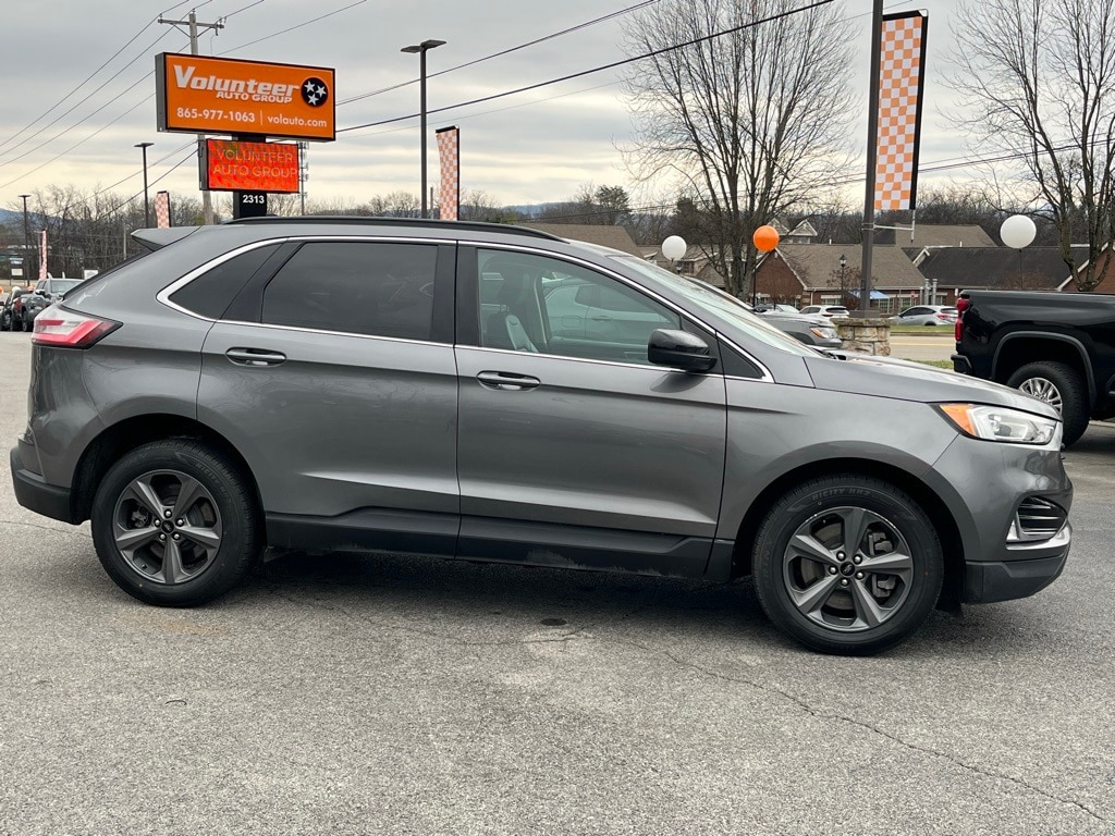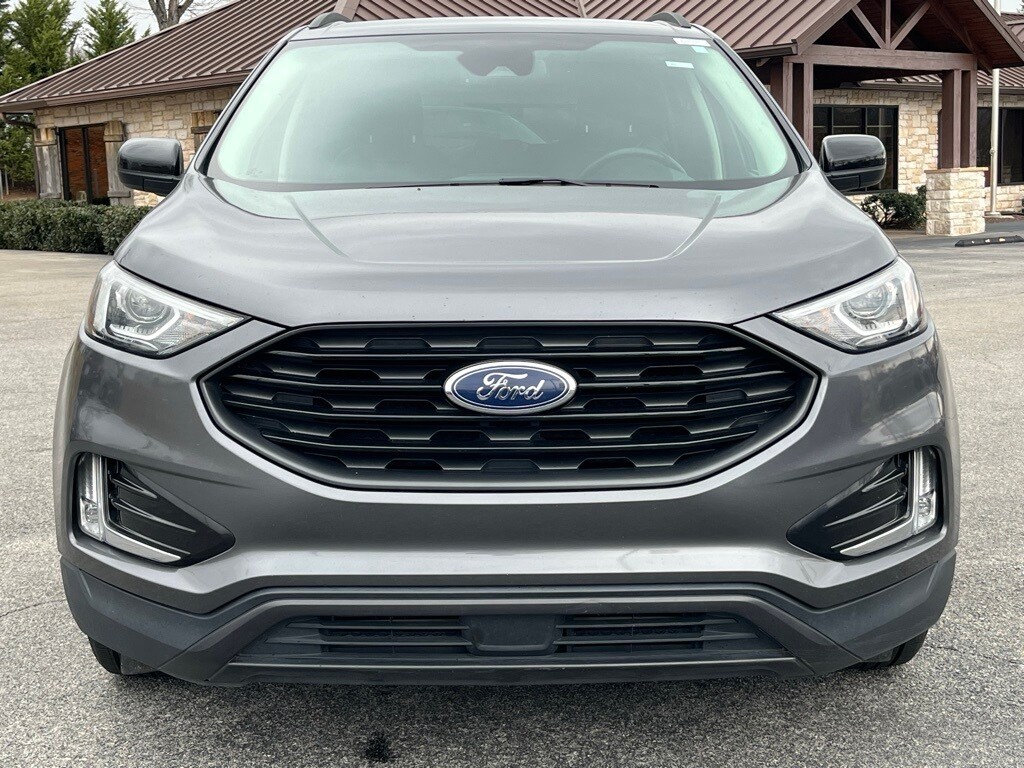 Check out all these great options Class II Trailer Tow Package, Convenience Package (110V/150W AC Power Outlet, Fog Lamps w/Chrome Bezel, Perimeter Alarm, Power Liftgate, Remote Start System, SecuriCode Keyless Entry Keypad, Universal Garage Door Opener (UGDO), and Wireless Charging Pad), Equipment Group 201A, Ford Co-Pilot360 Assist+ (Adaptive Cruise Control w/Stop & Go, Connected Built-In Navigation, Evasive Steering Assist, and Lane Centering), Sport Appearance Package (ActiveX Seating Material Heated Bucket Seats (513), Black Roof-Rack Side Rails, Dark Carbonized Gray Lower Front Bumper, Door Inserts w/Navy Pier Accent Stitching, Pillar Black Grille Bars, Pillar Black Mirror Caps, and Wheels: 18" Carbonized Gray-Painted Aluminum), Edge SEL, 4D Sport Utility, EcoBoost 2.0L I4 GTDi DOHC Turbocharged VCT, 8-Speed Automatic, AWD, Gray, Ebony, 3.80 Axle Ratio, 4-Wheel Disc Brakes, 6 Speakers, ABS brakes, ActiveX Seating Material Heated Bucket Seats, Air Conditioning, Alloy wheels, AM/FM radio: SiriusXM with 360L, Auto High-beam Headlights, Auto-dimming Rear-View mirror, Automatic temperature control, Brake assist, Bumpers: body-color, Compass, Delay-off headlights, Driver door bin, Driver vanity mirror, Dual front impact airbags, Dual front side impact airbags, Electronic Stability Control, Emergency communication system: SYNC 4 911 Assist, FordPass Connect, Four wheel independent suspension, Front anti-roll bar, Front Bucket Seats, Front Center Armrest w/Storage, Front dual zone A/C, Front reading lights, Fully automatic headlights, Heated door mirrors, Heated front seats, Illuminated entry, Knee airbag, Low tire pressure warning, Occupant sensing airbag, Outside temperature display, Overhead airbag, Overhead console, Panic alarm, Passenger door bin, Passenger vanity mirror, Power door mirrors, Power driver seat, Power passenger seat, Power steering, Power windows, Radio: AM/FM Stereo/MP3 Capable, Rear anti-roll bar, Rear Parking Sensors, Rear reading lights, Rear seat center armrest, Rear window defroster, Rear window wiper, Remote keyless entry, SiriusXM w/360L, Speed control, Speed-Sensitive Wipers, Split folding rear seat, Spoiler, Steering wheel mounted audio controls, SYNC 4A w/Enhanced Voice Recognition, Tachometer, Telescoping steering wheel, Tilt steering wheel, Traction control, Trip computer, Variably intermittent wipers, and Wheels: 18" Sparkle Silver-Painted Aluminum.