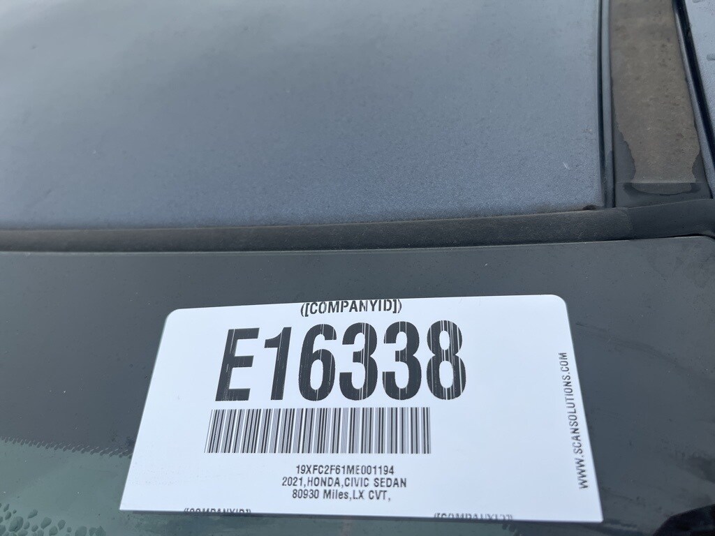 Gray 2021 Honda Civic LX 4D Sedan 2.0L I4 DOHC 16V i-VTEC FWD CVT