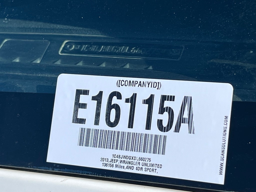 Bright White Clearcoat 2013 Jeep Wrangler Unlimited Sport 4D Sport Utility 3.6L V6 24V VVT 4WD 5-Speed Automatic