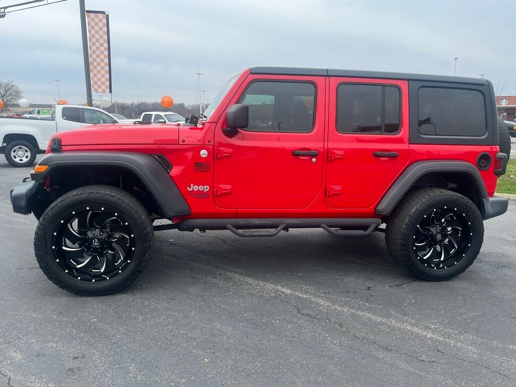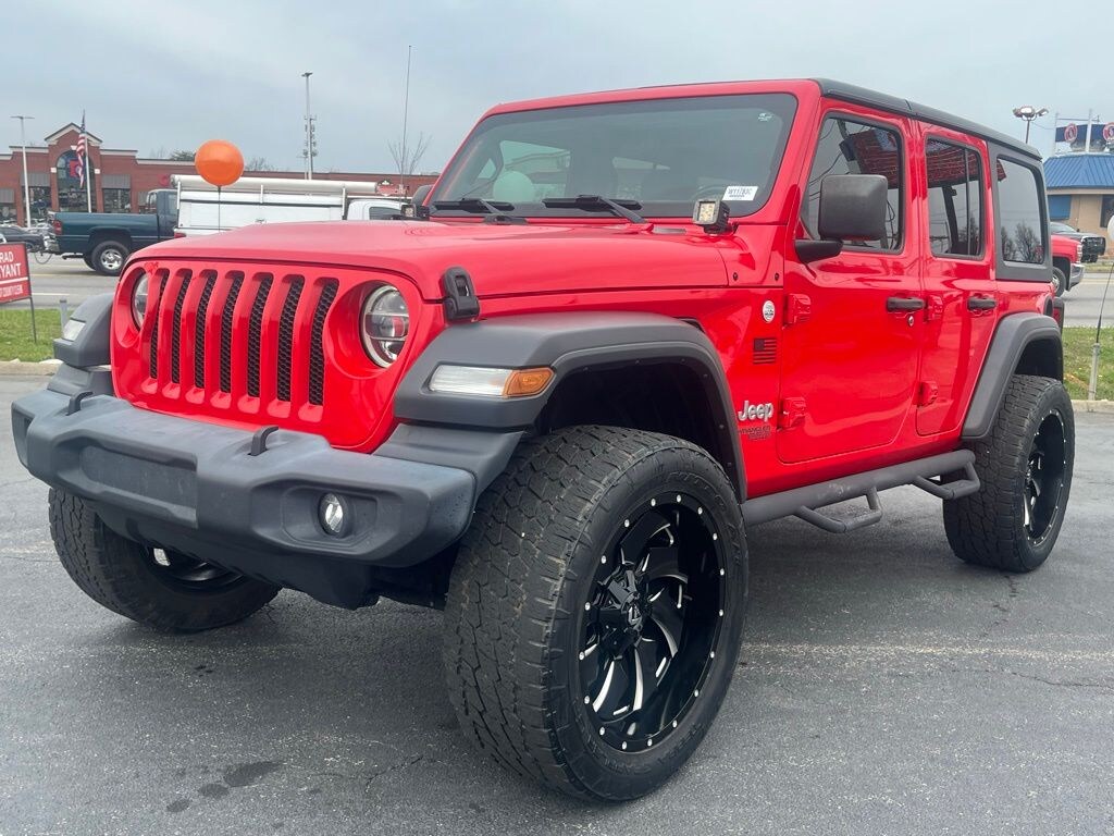 Check out all these great options LED Headlamp & Fog Lamp Group (Front LED Fog Lamps and LED Reflector Headlamps), Quick Order Package 22S Sport S (Automatic Headlamps, Deep Tint Sunscreen Windows, Front 1-Touch Down Power Windows, Leather Wrapped Steering Wheel, Power Heated Mirrors, Remote Keyless Entry, Security Alarm, Speed Sensitive Power Locks, Sun Visors w/Illuminated Vanity Mirrors, and Wheels: 17" x 7.5" Tech Silver Aluminum), Technology Group (1-Year SiriusXM Radio Service, 7.0" Touchscreen Display, Air Conditioning w/Auto Temperature Control, Air Filtering, Cluster 7.0" TFT Color Display, GPS Antenna Input, Integrated Center Stack Radio, Radio: Uconnect 4 w/7" Display, SiriusXM Satellite Radio, and USB Host Flip), Wrangler Unlimited Sport S, 4D Sport Utility, 2.0L I4 DOHC, 8-Speed Automatic, 4WD, Firecracker Red Clearcoat, Black Cloth, 3.45 Rear Axle Ratio, 4-Wheel Disc Brakes, 8 Speakers, ABS brakes, Air Conditioning, AM/FM radio, Apple CarPlay (DISC), Aux Battery, Black 3-Piece Hard Top, Brake assist, Cloth Low-Back Bucket Seats, Compass, Delay-off headlights, Driver door bin, Driver vanity mirror, Dual front impact airbags, Dual front side impact airbags, Electronic Stability Control, Freedom Panel Storage Bag, Front anti-roll bar, Front Bucket Seats, Front Center Armrest w/Storage, Front fog lights, Front reading lights, Google Android Auto (DISC), Integrated roll-over protection, Integrated Voice Command w/Bluetooth, Low tire pressure warning, MOPAR All-Weather Floor Mats (DISC), No Soft Top, Non-Lock Fuel Cap w/o Discriminator, Normal Duty Suspension, Occupant sensing airbag, Outside temperature display, ParkView Rear Back-Up Camera, Passenger door bin, Passenger vanity mirror, Power steering, Radio data system, Radio: Uconnect 3 w/5" Display, Rear anti-roll bar, Rear reading lights, Rear Window Defroster, Rear Window Wiper/Washer, Speed control, Split folding rear seat, Steering wheel mounted audio controls, Stop-Start Dual Battery System, Tachometer, Telescoping steering wheel, Tilt steering wheel, Traction control, Trip computer, Variably intermittent wipers, and Wheels: 17" x 7.5" Black Steel Styled.