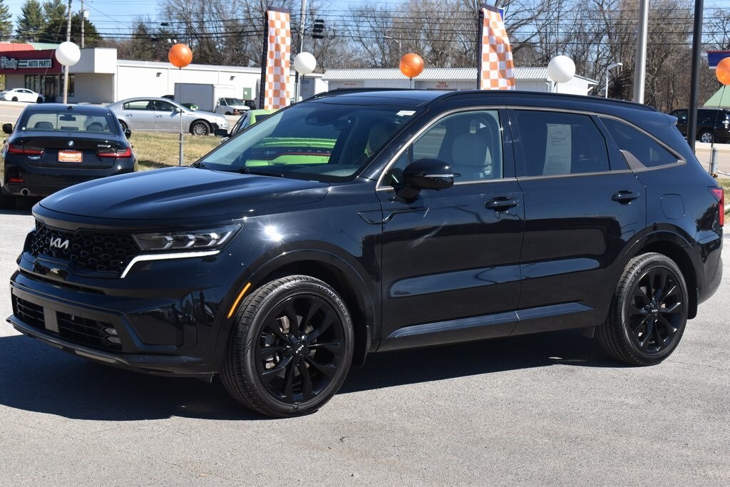 Must see!, **FULLY SERVICED AND DETAILED**, ECO Mode, Sport Mode, Bluetooth, Backup Camera, Moonroof/Sunroof, 3rd Row Seating, Heated/Cooled Leather Seats, Heated Steering Wheel, Power Driver Seat, Blindspot Monitoring, Sorento SX-Prestige, 4D Sport Utility, 2.5L I4 DGI Turbocharged DOHC 16V LEV3-ULEV70 281hp, 8-Speed DCT, FWD, Ebony Black, Grey Leather, 12 Speakers, 3.316 Axle Ratio, 3rd row seats: split-bench, 4-Wheel Disc Brakes, ABS brakes, Air Conditioning, Alloy wheels, AM/FM radio: SiriusXM, Apple CarPlay & Android Auto, Auto High-beam Headlights, Auto-dimming Rear-View mirror, Automatic temperature control, Brake assist, Bumpers: body-color, Carpeted Floor Mats, Delay-off headlights, Driver door bin, Driver vanity mirror, Dual front impact airbags, Dual front side impact airbags, Electronic Stability Control, Emergency communication system: UVO Link, Four wheel independent suspension, Front anti-roll bar, Front Bucket Seats, Front Center Armrest, Front dual zone A/C, Front fog lights, Front reading lights, Fully automatic headlights, Heated & Ventilated Front Bucket Seats, Heated door mirrors, Heated front seats, Heated rear seats, Heated steering wheel, Illuminated entry, Knee airbag, Leather steering wheel, Low tire pressure warning, Memory seat, Navigation System, Occupant sensing airbag, Outside temperature display, Overhead airbag, Overhead console, Panic alarm, Passenger door bin, Passenger vanity mirror, Perforated Genuine Leather Seat Trim, Power door mirrors, Power driver seat, Power Liftgate, Power moonroof, Power passenger seat, Power steering, Power windows, Radio data system, Radio: AM/FM Bose Premium Audio System, Rear air conditioning, Rear anti-roll bar, Rear reading lights, Rear window defroster, Rear window wiper, Remote keyless entry, Roof rack: rails only, Securi