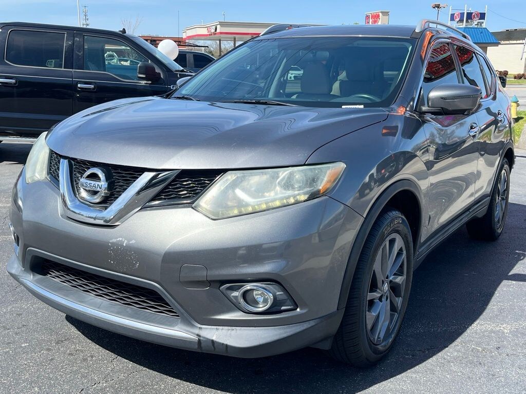 Must see!, **FULLY SERVICED AND DETAILED**, ECO Mode, Sport Mode, Bluetooth, Backup Camera, Navigation, Moonroof/Sunroof, Leather, Heated Seats, Heated Leather Seats, Power Liftgate, Remote Start, Blindspot Monitoring, Lane Keep Assist, **NEW TIRES**, Rogue SL, 4D Sport Utility, 2.5L I4 DOHC 16V, CVT with Xtronic, FWD, Gun Metallic, Almond Leather, 18" Alloy Wheels, 4-Wheel Disc Brakes, 5.694 Axle Ratio, 9 Speakers, ABS brakes, Activation Disclaimer, Air Conditioning, Alloy wheels, AM/FM radio: SiriusXM, Anti-whiplash front head restraints, Automatic temperature control, Brake assist, Bumpers: body-color, CD player, Chrome Rear Bumper Protector, Delay-off headlights, Driver door bin, Driver vanity mirror, Dual front impact airbags, Dual front side impact airbags, Electronic Stability Control, Emergency communication system, Floor Mats & 2-PC Cargo Area Protector, Forward Emergency Braking, Four wheel independent suspension, Front anti-roll bar, Front Bucket Seats, Front Center Armrest w/Storage, Front dual zone A/C, Front fog lights, Front reading lights, Fully automatic headlights, Heated door mirrors, Heated Front Bucket Seats, Heated front seats, Illuminated entry, Leather Shift Knob, Leather-Appointed Seat Trim, LED Headlights, Low tire pressure warning, Navigation System, Occupant sensing airbag, Outside temperature display, Overhead airbag, Overhead console, Panic alarm, Passenger door bin, Passenger vanity mirror, Power door mirrors, Power driver seat, Power Liftgate, Power steering, Power windows, Radio data system, Radio: AM/FM/CD/RDS/AUX NissanConnect w/Navigation, Rear anti-roll bar, Rear seat center armrest, Rear window defroster, Rear window wiper, Remote keyless entry, Roof rack: rails only, Security system, SL Premium Package, Speed control, Speed-sensing steering, Splash Guards, Split folding rear seat, Spoiler, Steering wheel mounted audio controls, Tachometer, Telescoping steering wheel, Tilt steering wheel, Traction control, Trip computer, Turn signal indicato