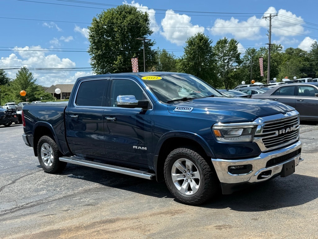 Patriot Blue Pearlcoat 2022 Ram 1500 Laramie Carfax 1-Owner 4D Crew Cab HEMI 5.7L V8 Multi Displacement VVT 4WD 8-Speed Automatic
