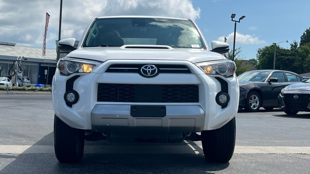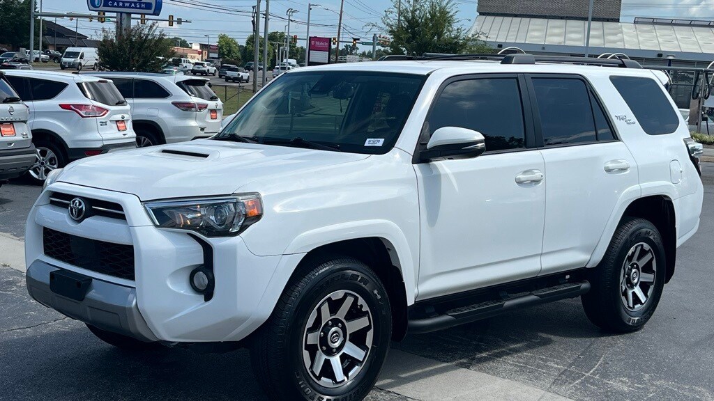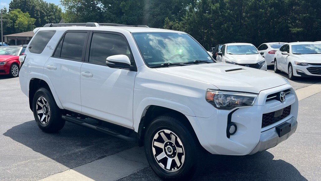 Check out all these great options 4Runner TRD Off-Road Premium, 4D Sport Utility, 4.0L V6 SMPI DOHC, 5-Speed Automatic with Overdrive, 4WD, White, Black/Graphite w/Leather Seat Trim, 3.727 Axle Ratio, 4-Wheel Disc Brakes, 8 Speakers, ABS brakes, Air Conditioning, Alloy wheels, AM/FM radio: SiriusXM, Anti-whiplash front head restraints, Apple CarPlay/Android Auto, Auto High-beam Headlights, Auto-dimming Rear-View mirror, Black Roof Rails, Body Color Heated Mirrors, Brake assist, Bumpers: body-color, Compass, Driver door bin, Driver vanity mirror, Dual front impact airbags, Dual front side impact airbags, Electronic Stability Control, Emergency communication system: Safety Connect with 1-year trial, Exterior Parking Camera Rear, Front anti-roll bar, Front Bucket Seats, Front Center Armrest, Front fog lights, Front reading lights, Front wheel independent suspension, Garage Door Opener, Garage door transmitter: HomeLink, Heated door mirrors, Heated Front Bucket Seats, Heated front seats, Illuminated entry, Knee airbag, Leather Shift Knob, Low tire pressure warning, Moonroof w/Tilt Up & Slide, Occupant sensing airbag, Outside temperature display, Overhead airbag, Overhead console, Panic alarm, Passenger door bin, Passenger vanity mirror, Power door mirrors, Power driver seat, Power passenger seat, Power steering, Power windows, Radio: Premium Audio w/Dynamic Navigation, Rear anti-roll bar, Rear seat center armrest, Rear window defroster, Rear window wiper, Remote keyless entry, Roof rack: rails only, Security system, Softex Synthetic Leather Seat Trim, Speed control, Speed-sensing steering, Split folding rear seat, Spoiler, Steering wheel mounted audio controls, Tachometer, Telescoping steering wheel, Tilt steering wheel, Traction control, Trip computer, Turn signal indicator mirrors, Variably intermittent wipers, and Wheels: 17" x 7.5" 7-Spoke Unique Off-Road Alloy.