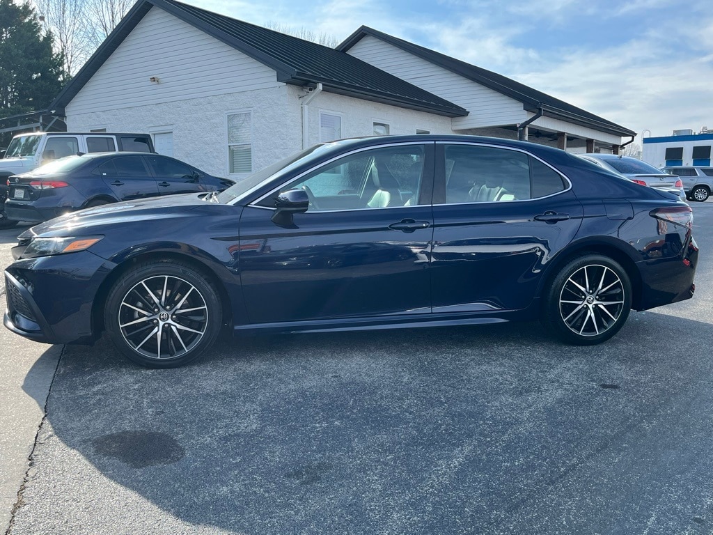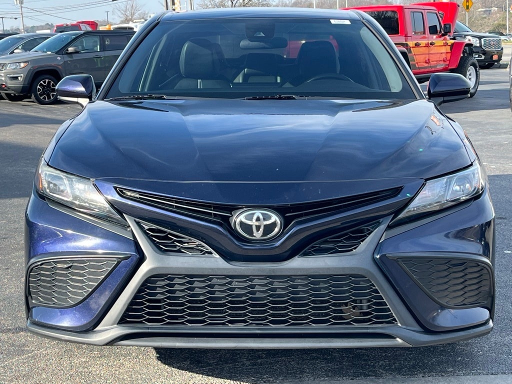 Must see!, **FULLY SERVICED AND DETAILED**, Sport Mode, Bluetooth, Backup Camera, Navigation, Leather, Power Driver Seat, Remote Keyless Entry, Camry SE Nightshade, 4D Sedan, 2.5L I4 DOHC 16V, 8-Speed Automatic, FWD, Blue, Cloth, 4-Wheel Disc Brakes, 6 Speakers, ABS brakes, Air Conditioning, Alloy wheels, AM/FM radio: SiriusXM, Apple CarPlay/Android Auto, Auto High-beam Headlights, Automatic temperature control, Black Door Handles, Black Mirror Caps, Black Rear Badges, Black Rear Spoiler, Black Shark-Fin Antenna, Black Window Molding, Brake assist, Bumpers: body-color, Delay-off headlights, Driver door bin, Driver vanity mirror, Dual front impact airbags, Dual front side impact airbags, Electronic Stability Control, Emergency communication system: Safety Connect with 1-year trial, Exterior Parking Camera Rear, Fabric Seat Trim w/Sport SofTex, Four wheel independent suspension, Front anti-roll bar, Front Bucket Seats, Front Center Armrest, Front reading lights, Fully automatic headlights, Illuminated entry, Knee airbag, Low tire pressure warning, Occupant sensing airbag, Outside temperature display, Overhead airbag, Overhead console, Panic alarm, Passenger door bin, Passenger vanity mirror, Power door mirrors, Power driver seat, Power steering, Power windows, Radio data system, Radio: AM/FM Audio System, Rear anti-roll bar, Rear seat center armrest, Rear side impact airbag, Rear window defroster, Remote keyless entry, Security system, Speed control, Speed-sensing steering, Split folding rear seat, Spoiler, Steering wheel mounted audio controls, Tachometer, Telescoping steering wheel, Tilt steering wheel, Traction control, Trip computer, Variably intermittent wipers, Wheels: 8.0J x 18" Black-Painted Alloy, Camry SE Nightshade, 4D Sedan, 2.5L I4 DOHC 16V, 8-Speed Automatic, FWD, Blue, Cloth.